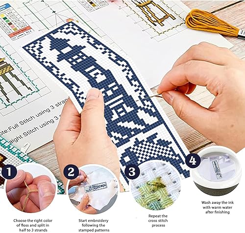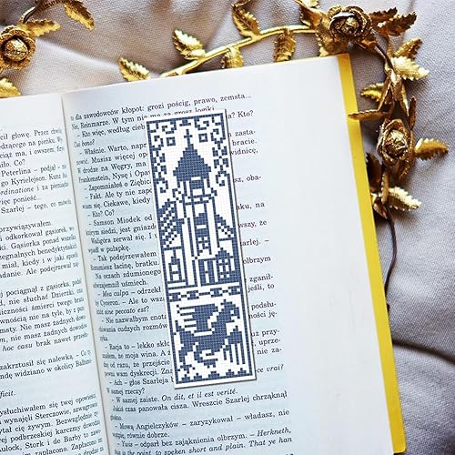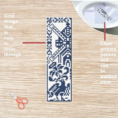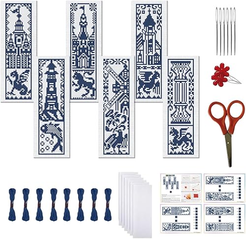 FREEBLOSS 6 ensemble de Kits de Marque Pages de Point de Croix Estampillés Monochrome Kit de Marque Pages de Point de Croix Kit de Marque Pages de Broderie pour Débutants 8x2.4''