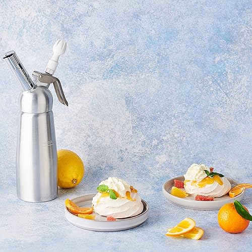 MASTRAD – Siphon 0,3 L Sauces Crèmes Chantilly Mousses Chaudes Ou Froides – Tête Démontable – Aluminium Anodisé Ultra Résistant – Ergonomique – Livré Avec 3 Embouts & Brosse De Nettoyage