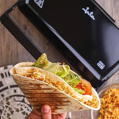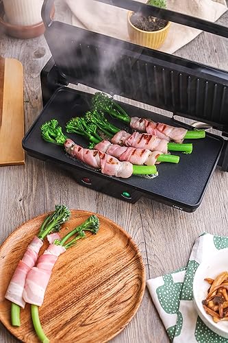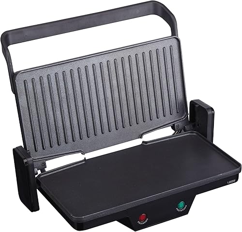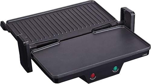 Jata Gril de table électrique, 1000 W, métal, noir, 27 x 14 cm, thermostat, grande ouverture à 180 degrés, surface de gril inclinable, bac à miettes pour graisse