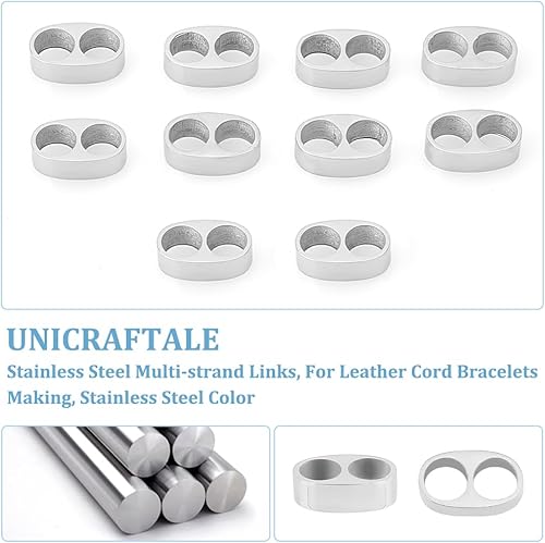 UNICRAFTALE 10 Pcs 4mm en Acier Inoxydable Multi-Brins Liens 2 Trou Entretoise Perle Slider Perles en Métal Connecteurs pour Cordon en Cuir Bracelets Fabrication de Bijoux 7.5x12x4mm
