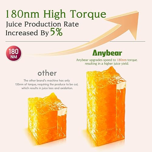 Anybear Extracteur de Jus à Froid, 200W Masticien Extracteur de Jus, 110cm Grande Gamelle pour Fruits et Légumes Entiers, Extracteur de jus Lent, Matériaux Tritan, Sans BPA (Argent)