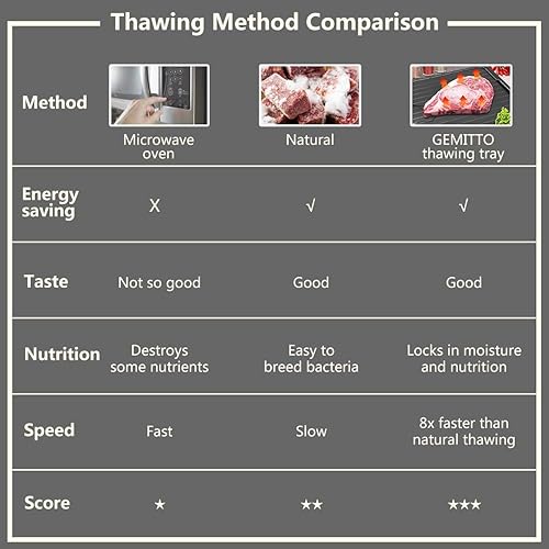 GEMITTO Plaque decongelation Rapide, dégivrage des Aliments surgelés, Fondre Viande surgelés naturellement et sécurité, Pas d'électricité et Aucun ingrédient Chimique, 33.5 x 23.5 x 3.5 cm(Plateau)