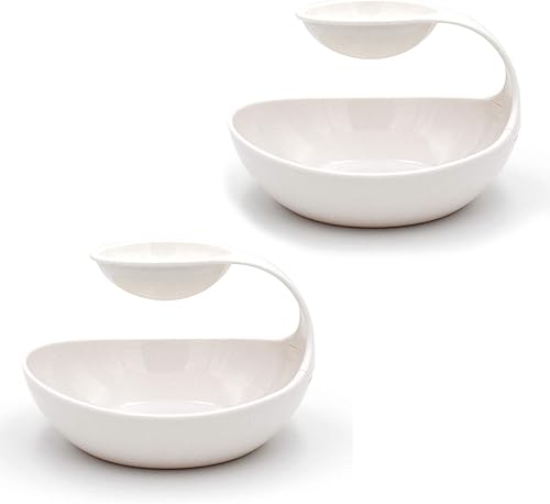 Emall Life Ensemble de 2 Bols à tremper et à tremper, Réutilisable Chips à Salade à Deux étages Fruits Apéritifs Servant des Plats de Service Plats pour Le dîner ou la fête de Famille (Blanc)