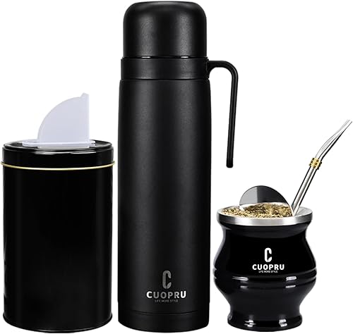 Cuopru Kit Yerba Mate en acier inoxydable de qualité supérieure, gourde isotherme, conteneur, bombilla, brosse de nettoyage, ensemble de filtres à thé, noir mat