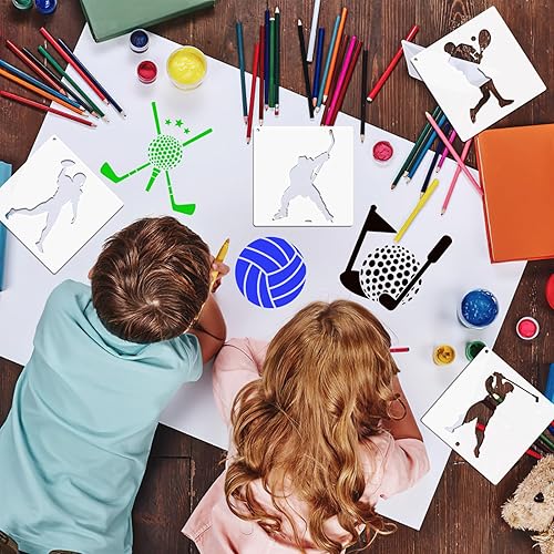 JSRQT 25 Pièces Pochoirs de Balle de Sport, Modèles de Pochoirs de Football Basket-ball Volley-ball Baseball Stencils, Pochoirs Réutilisables en Plastique pour Journal Bois Mur Toile DIY Craft, 5 Inch