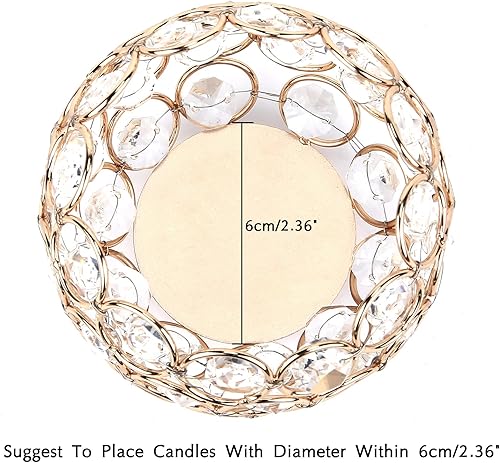 Qucover Bougeoir Doré en Cristal, Lot de 2 Bougies Chauffe-Plat Bol en Métal Luxueux Candélabre, Photophore Noel, Bougeoir Decoratif pour Centres de Table Mariage Salon, 3.74 * 3.15 in