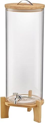 VEVOR Distributeur de Boissons Grande Capacité de 13 L, Fontaine à Eau en Verre, Distribution d’Eau Jus Limonade Thé Glacé, avec Support en Bois et Robinet en Inox, pour Restaurant Café Hôtel Fête
