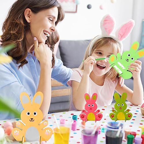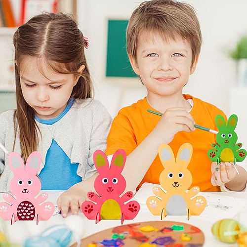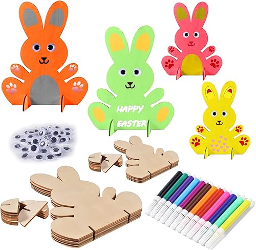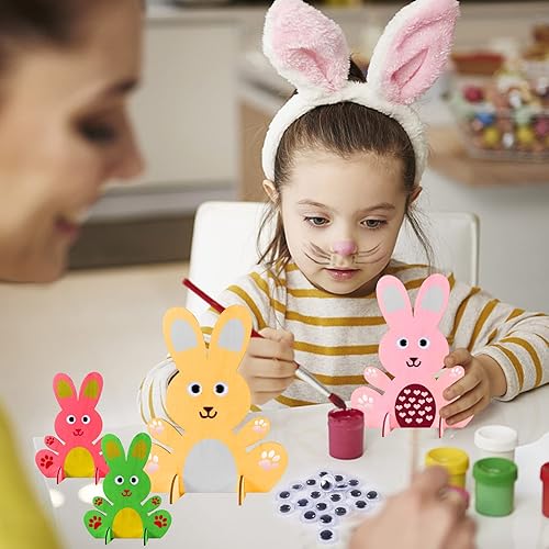 Lemotoy Lapins en Bois à Peindre, Bricolage Décoration de Lapin de Pâques, DIY Pâques Lapins en Bois, des Yeux écarquillés, Ensemble Artisanal Enfants Printemps pour Pâques Décorations (10)