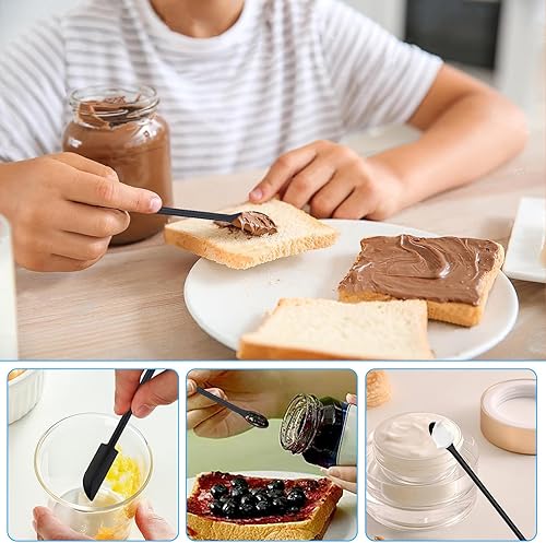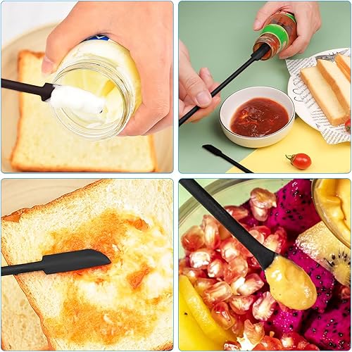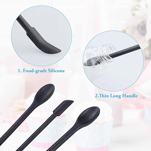 Lot de 3 mini spatules à confiture en silicone, petites cuillères et grattoirs pour pot de maquillage étroit, long manche pour obtenir la dernière goutte des bouteilles alimentaires