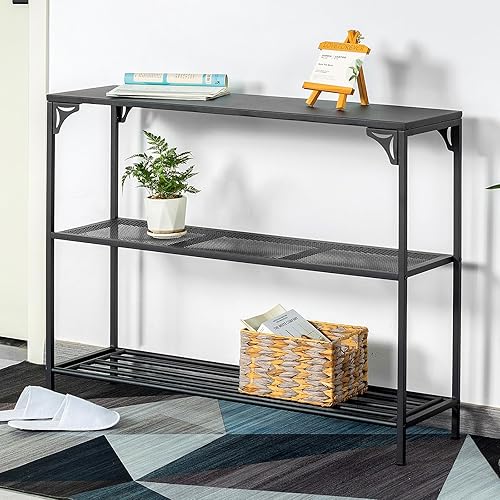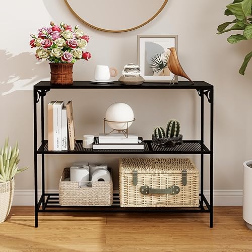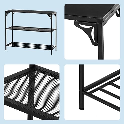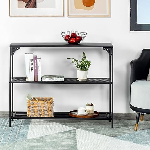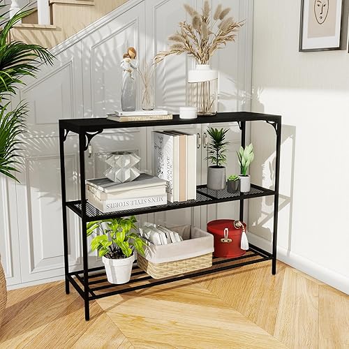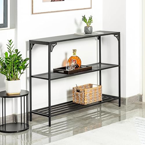 HDANI Table Console,Table d'Appoint,Bout de Canapé avec 2 Étagères de Treillis,Rangement Ouvert,pour Salon,Entrée,Couloir 100 x 30 x 80cm,Noir
