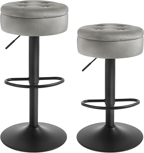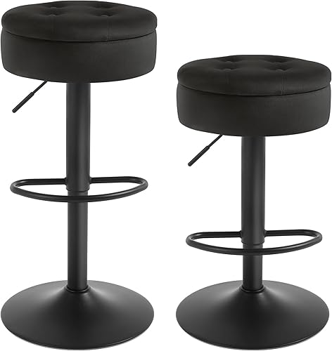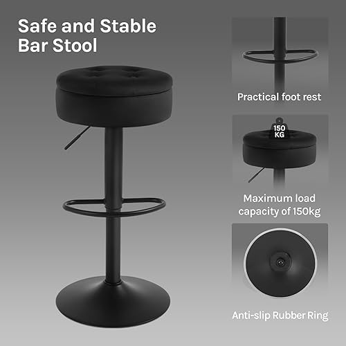 WOLTU Tabourets Bar, Lot de 2 Tabourets Haut, Tabourets Pivotants à 360°, Tabourets Modernes avec Repose-Pieds pour Cuisine, Salle à Manger, Bar, Velours + Métal, Noir