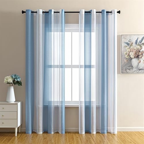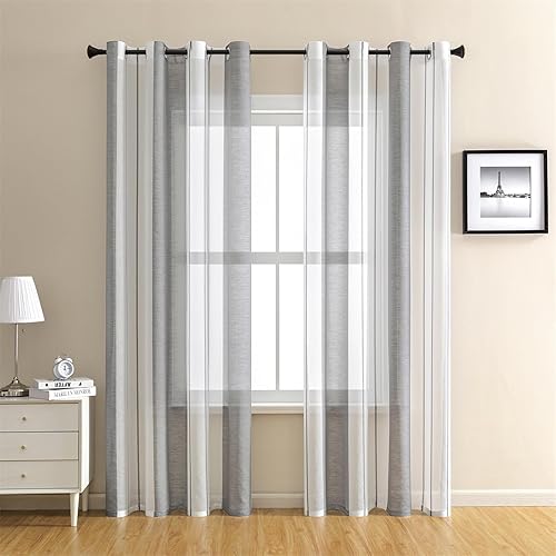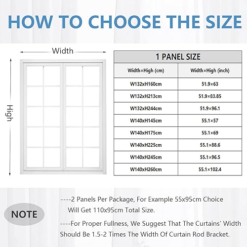 Surwin Lot de 2 Rideau Voilage, Style Nordique Simple Rideau à Oeillets, Voiles Intérieurs Translucides, Rideaux Salon Moderne pour Décorer Salon, Chambre, Cuisine (140x225cm,Beige)