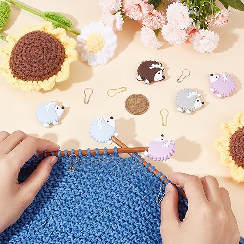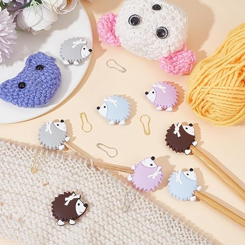 NBEADS 8 Pcs Stoppeur D'aiguille à Tricoter Hedgehog avec 60 Pcs Épingles à Bulbe de Sécurité, Protecteurs de Pointes D'aiguilles Epingles à Tricoter en Forme de Poire pour Couture et Bricolage