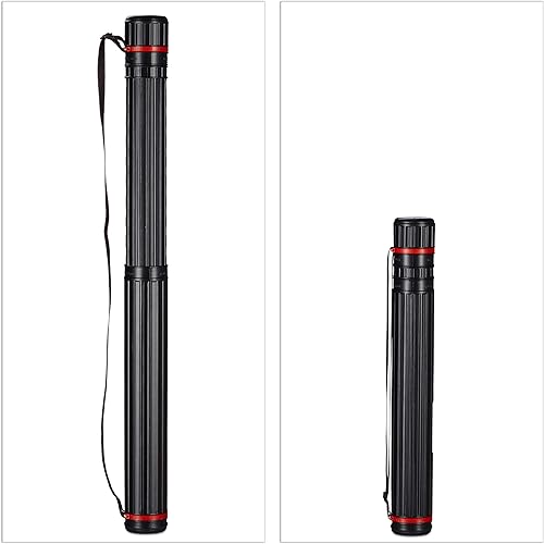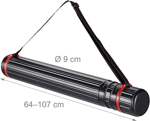 Relaxdays Tube de Transport, Lot de 10, télescopique Plastique avec Sangle réglable et Couvercle à Visser, Noir, 64 à 107 cm, A0