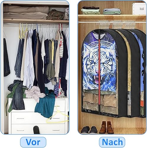 Housses de Vêtements, 60×150 cm Housses De VêTements Avec Zip, Housses à Vêtements Penderie Transparent, Housses de Vêtements Chemise, Pour Stockage de Costumes et Le Voyage(Noir)