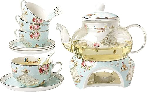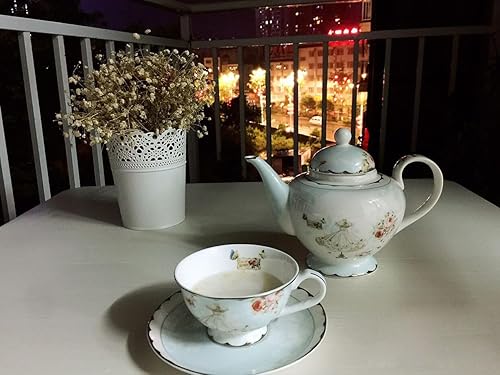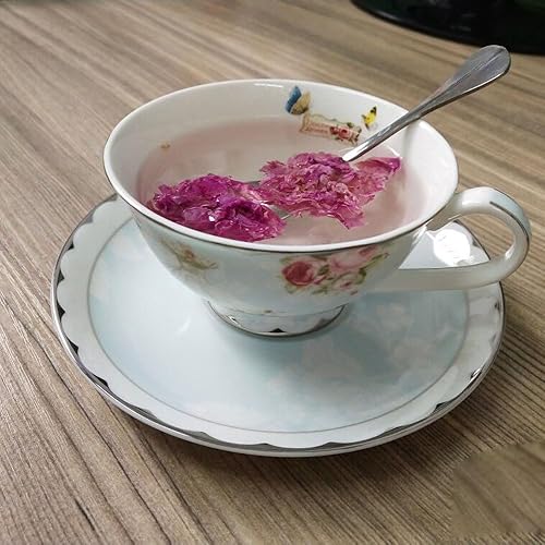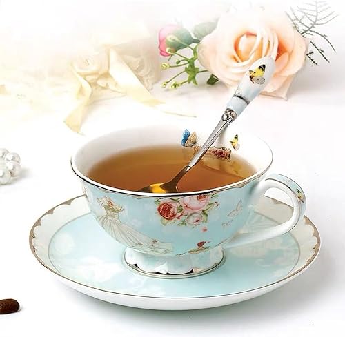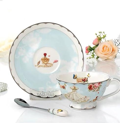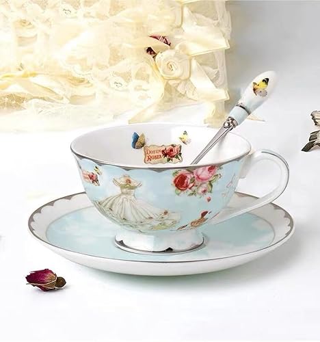 YBK Tech Ensemble tasse et soucoupe style européen en porcelaine anglaise pour thé, café, maison, cuisine, mariage - Motif rose et robe (style I)