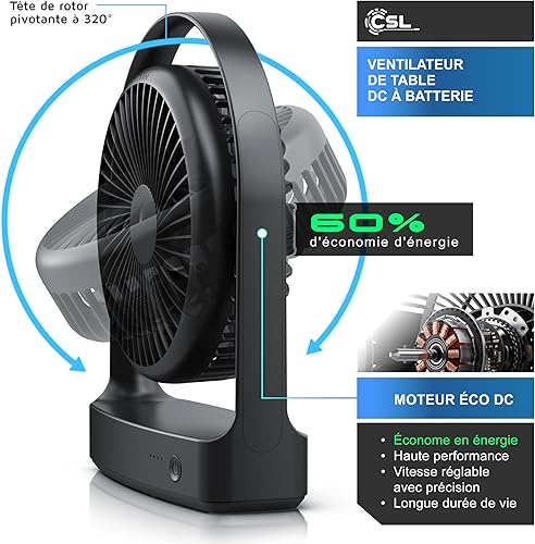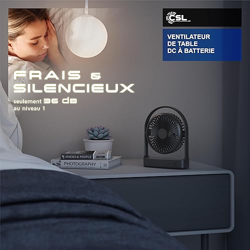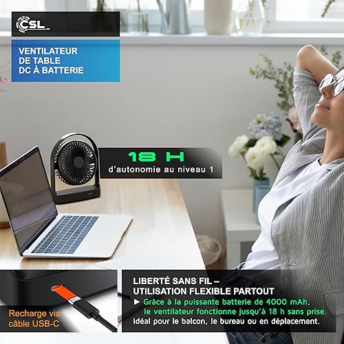 CSL - Ventilateur de table sans fil - Mini ventilateur USB - Moteur DC Brushless Silent très silencieux - Batterie Li-ion 4000 mAh