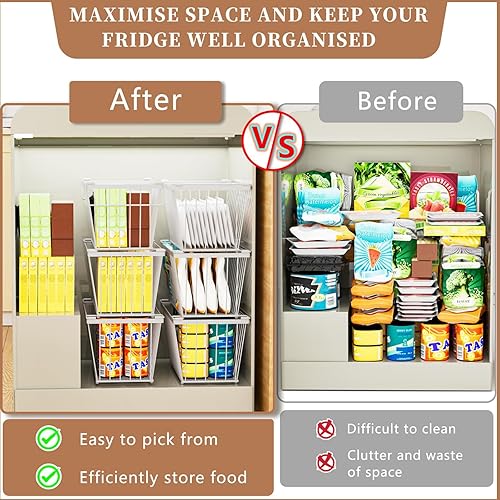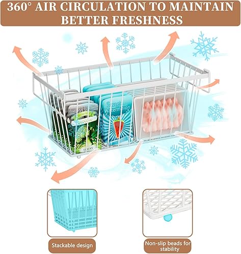 Lot de 4 paniers de congélation empilables avec poignées, support de rangement suspendu pour réfrigérateur, crème glacée, tri et récupération faciles des aliments congelés, permettent la circulation