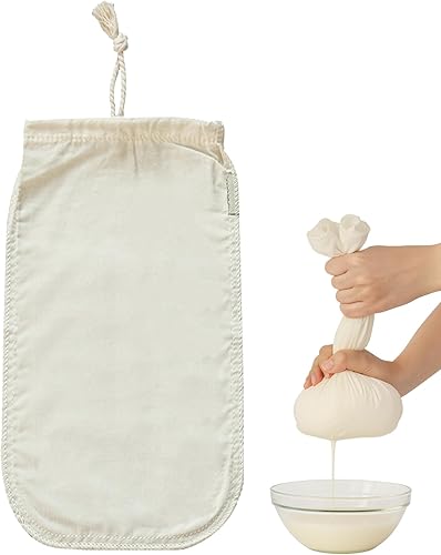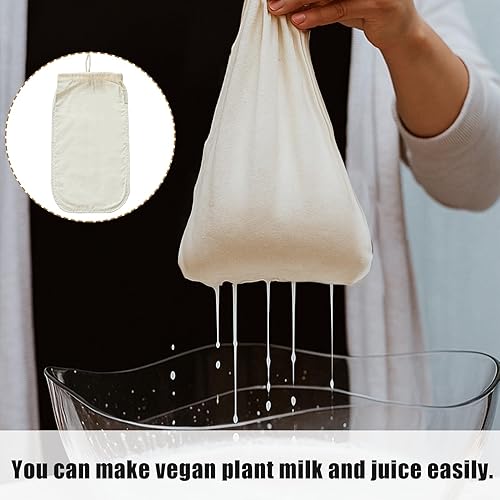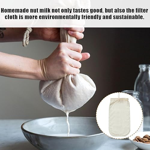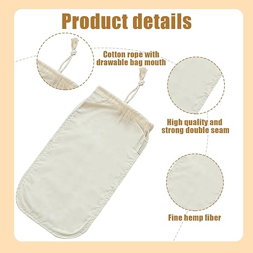 Huybaa Sac à Lait Végétal - Sachet en Chanvre Naturel avec Cordon - Lait de Soja, d'Amande, de Noisette - Filtre en Tissu pour Breuvages Végétaux Frais - Sac Alimentaire 100% Vegan - 30x20 cm