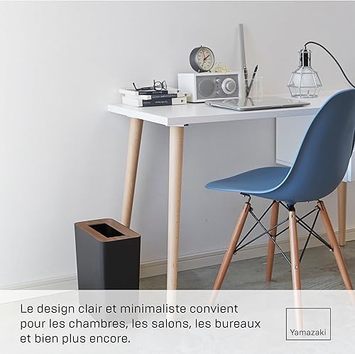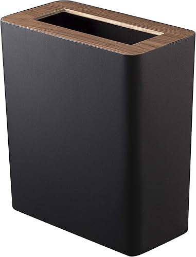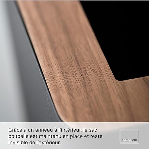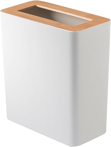 Yamazaki 3196 RIN Trash Can Rectangular, white, Steel/Wood, 28 x 15 x 30 cm