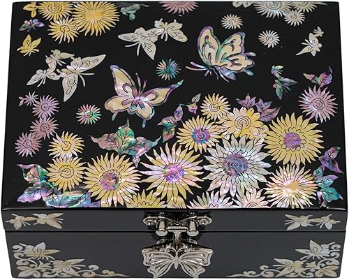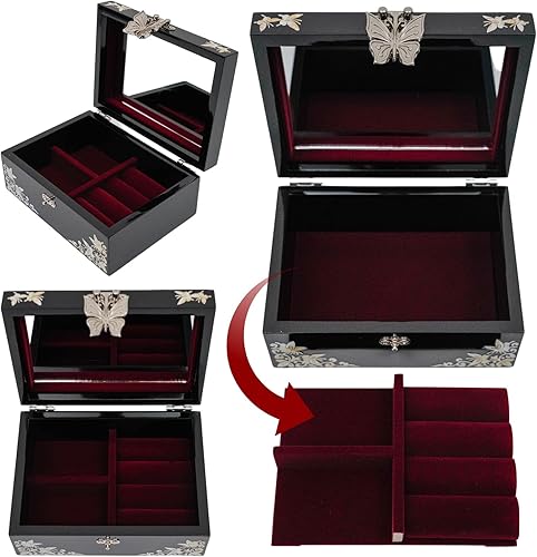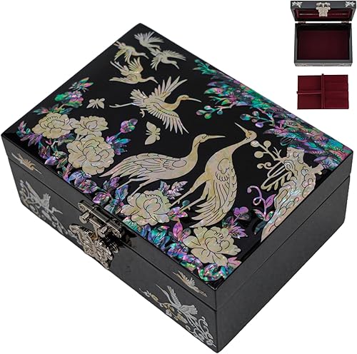 February Mountain Boîte à bijoux en nacre – Cadeau papillon pour femme, anniversaire, mariage, fête des mères, Noël, remise de diplôme (Grue)