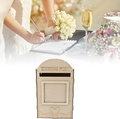 Qukaim Boîte aux lettres de mariage en bois avec clé de verrouillage, boîte aux lettres pour réception, anniversaire de mariage, décoration de fête, JM01618