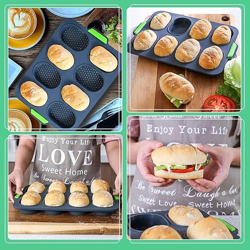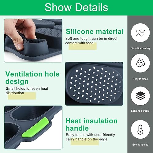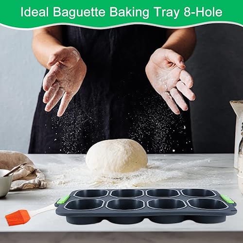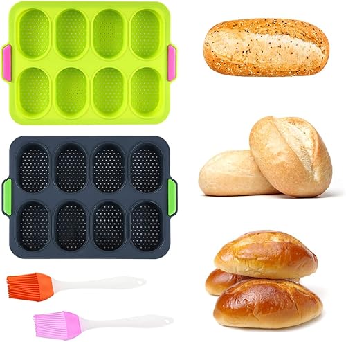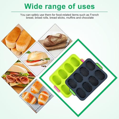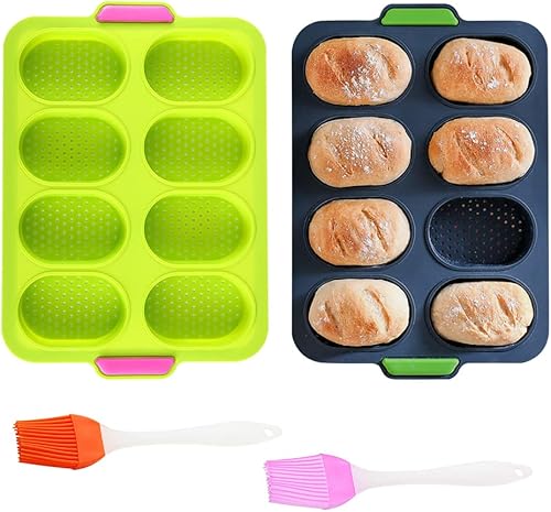 HAOMEEDUO 2 PCS Mini Plateau de Cuisson Vert Moule a Mini Pain Gris 8 Grilles Moule à Pain en Silicone Plateau de Croustillant de Pain Moule Petit Pain avec Pinceau Plat pour Chocolat, 34.5*23.8*2.5CM