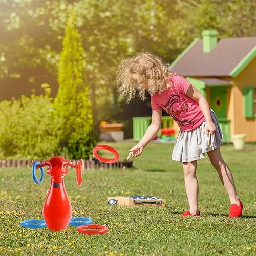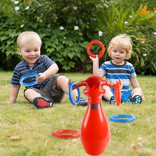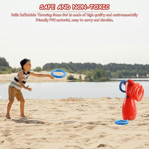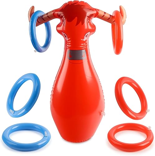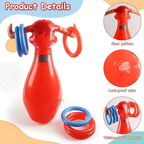 JWTRSVTY Jeu De Lancer De Taureau Gonflable, Jeu Lancer Anneaux Bulls, Lancer Vache Gonflable Ring Toss Game, avec 1 Gonflables Taureau Rouge+6 Anneaux, Pour Western Cowboy Thème Fête Accessoires Déco