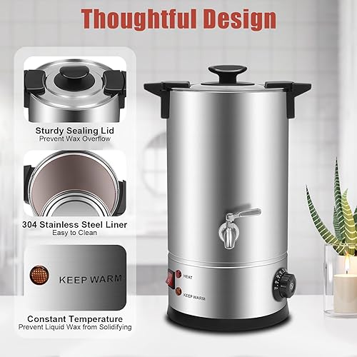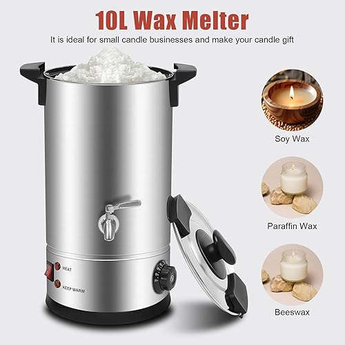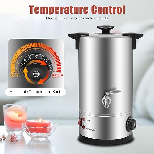 SOPERIT Kit de fabrication de bougies électrique pour fondeur de cire 10,5 Qts température pour la cire de soja, Appareil Fondeur de Cire Bougie Machine de Fonte, Fabrication de Bougies