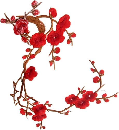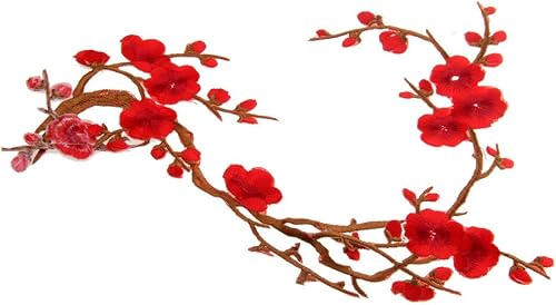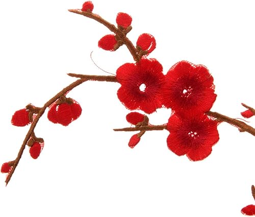1pcs Patch Fleur Style Chinois Lace Tissu Bordure Vêtement Ornement Applique à Coudre Diy - Rouge foncé