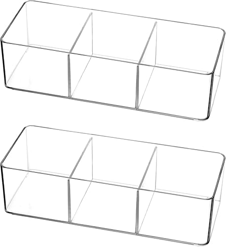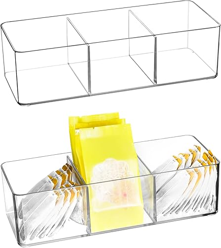 QWORK® Lot de 2 boîtes de Rangement en Acrylique pour thé, sachets de café, dosettes de café, édulcorants, Sucre et Plus (3 Compartiments)