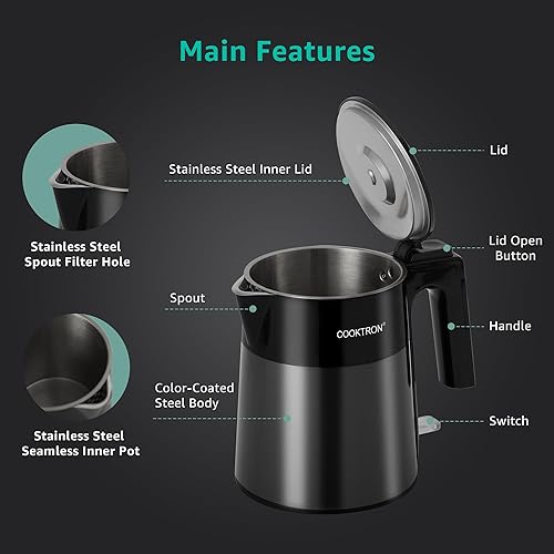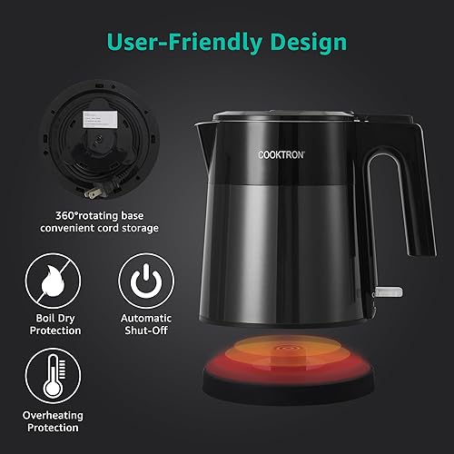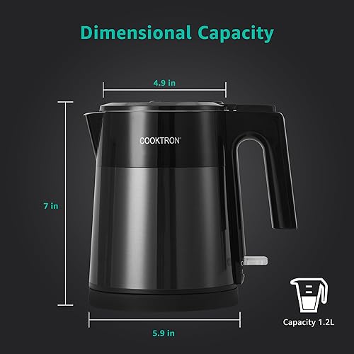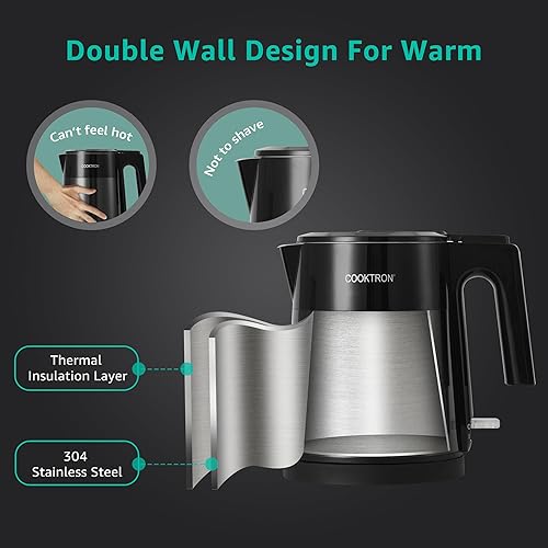 Cooktron Bouilloire Électrique Inox, 1,7 L, Verte, Extra Silencieuse 30dB, BPA-Free, Design à Double Paroi, Chauffage Rapide