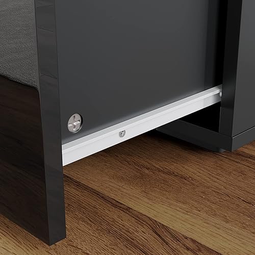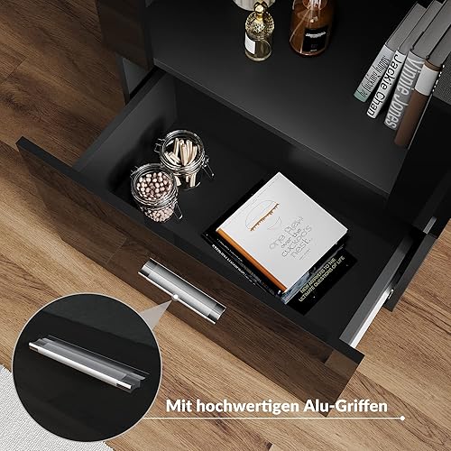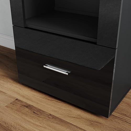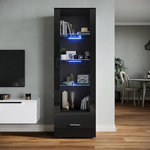 SONNI Vitrine en verre avec éclairage LED noir/blanc, façade brillante, avec 4 étagères et 1 tiroir. Vitrine sur pied, vitrine de salon, 550 x 350 x 1720 mm (l x P x H)
