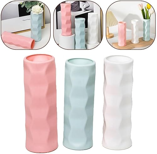 Vase en plastique incassable anti-chute, résistant aux fuites d'eau, design ondulé (blanc)