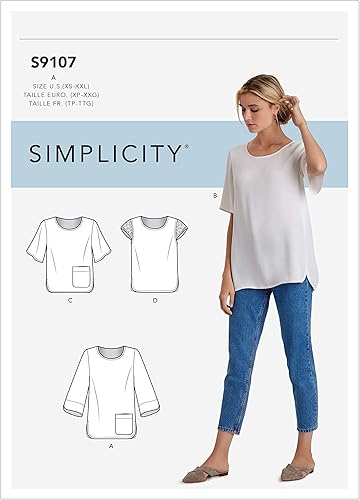 Simplicity S9107 Patron de Couture, Papier, Blanc, A (XS-S-M-L-XL-XXL)