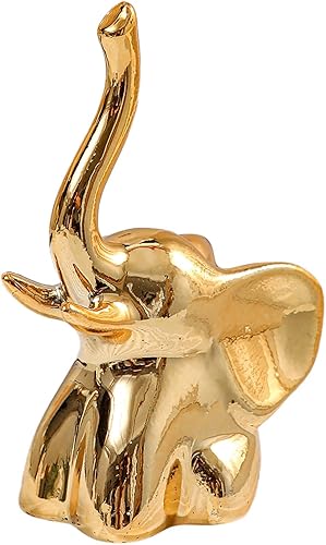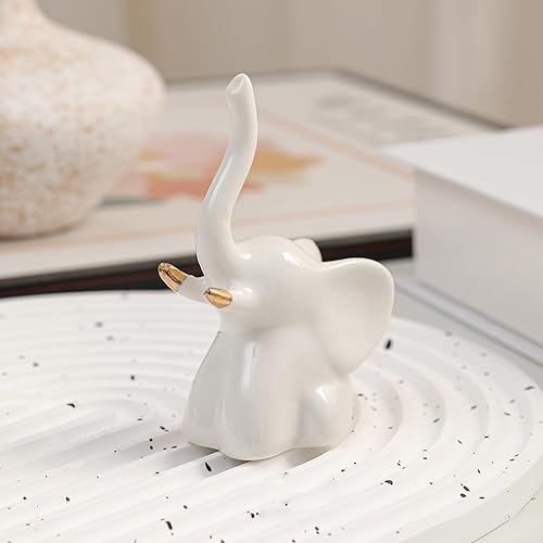 Statue d'éléphant pour salle de bain, figurine d'éléphant, porte-bague, décoration en céramique de style moderne, convient pour la maison, le salon, la bibliothèque, le bureau, ornements gris pour (or