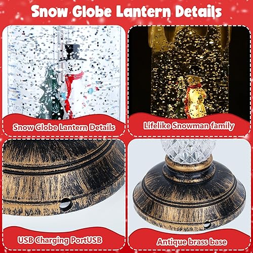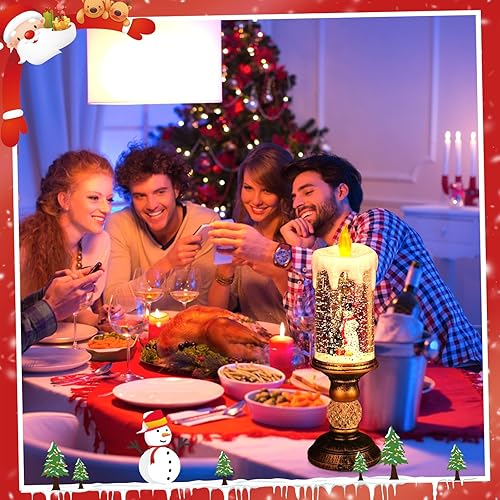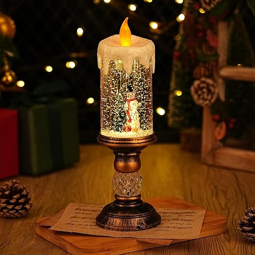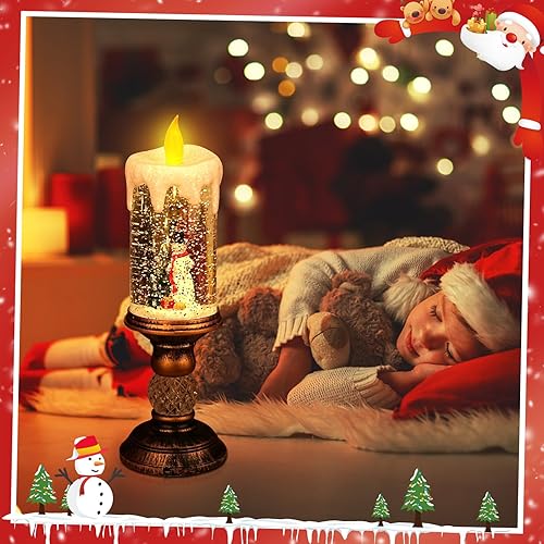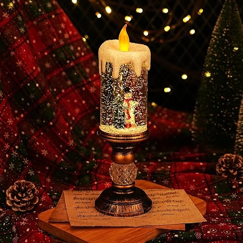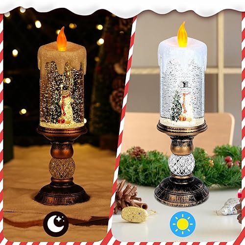 Shinkuro Boule de Neige de Noël - Bougie sans Flamme pour Scène du Père Noël et Lanterne LED pour Arbre, Remplie d'Eau et de Paillettes