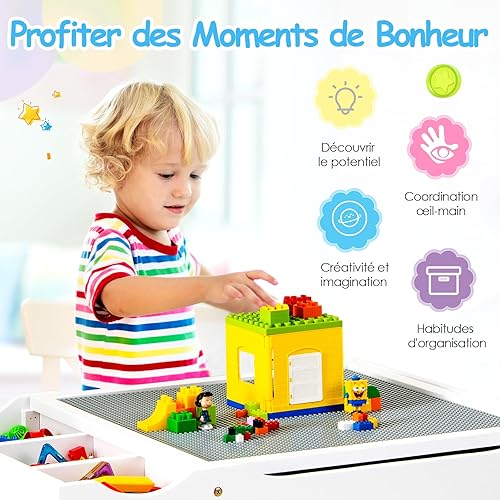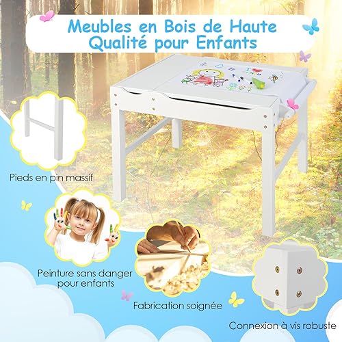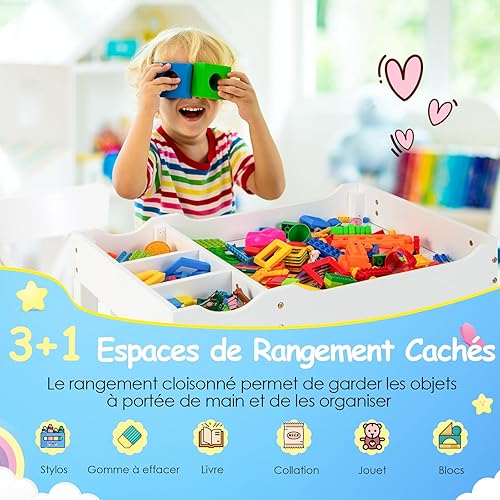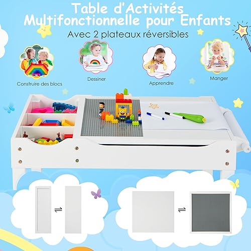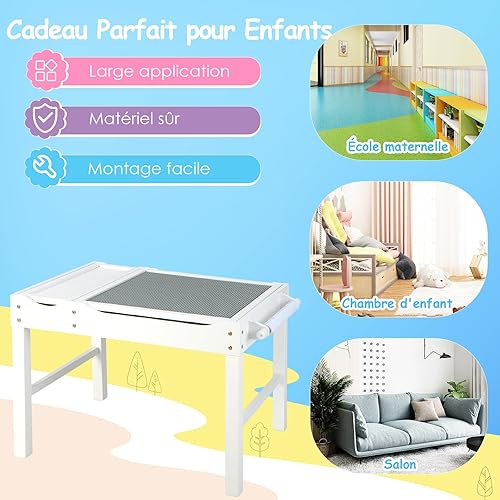 DREAMADE Table de Jeu Multi-Activités en Bois Enfants 80x60x57CM,Table de Construction Réversible Tout-Petits 3+Ans avec Plateau Double Face,Rouleau de Papier,3 Cubes,Papier Dessin (Naturel)