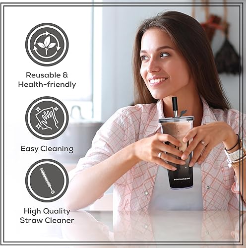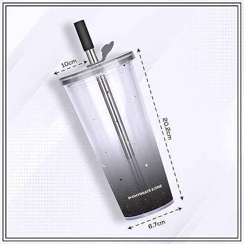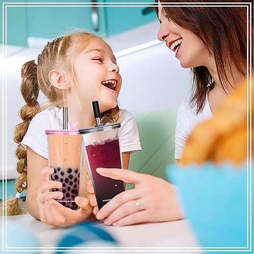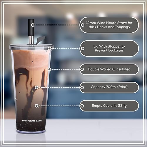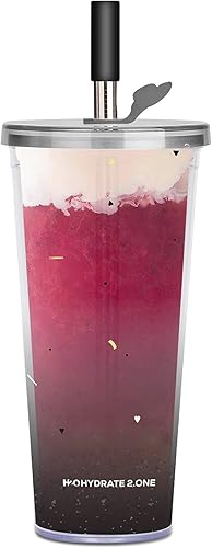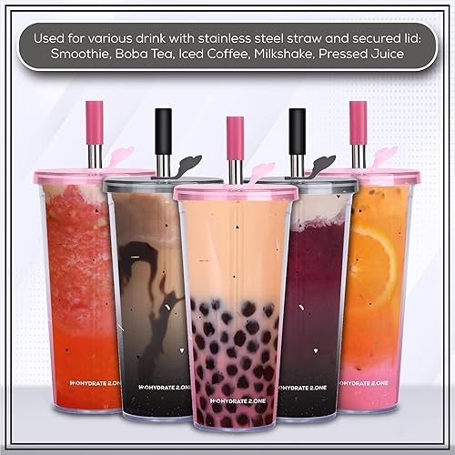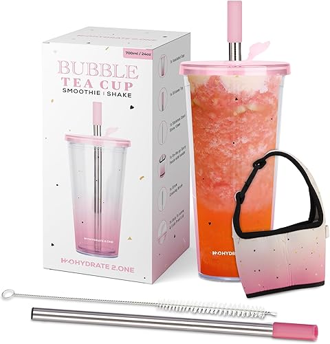 HYDRATE 2.ONE Gobelet Plastique Reutilisable avec Paille pour Bubble Tea perles en inox - Grand Verre a cocktail de 700ml pour smoothie, tasse a the, inclut un couvercle et sac de transport (Rose)