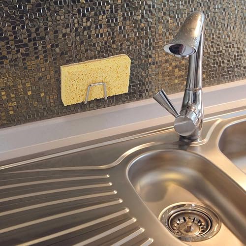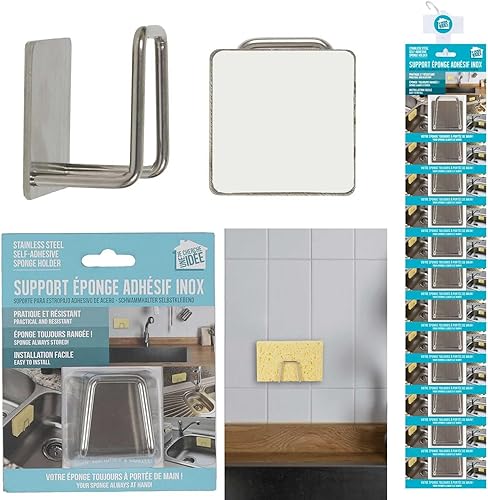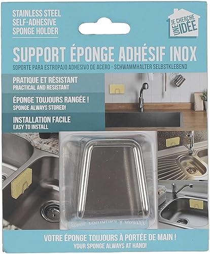 JE CHERCHE UNE IDEE, ME2755, Support Eponge Adhesif en INOX 4X4X3 cm, Matériau Durable en Acier Inoxydable, Design Minimaliste Compact, Installation Facile sans Outils