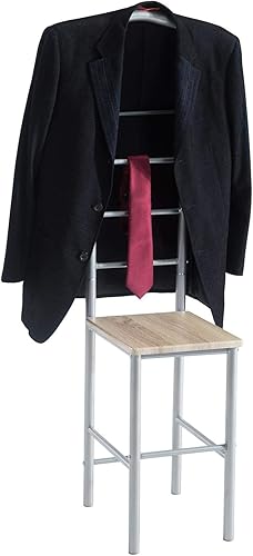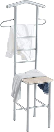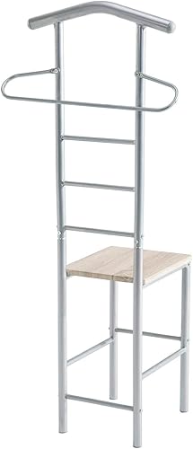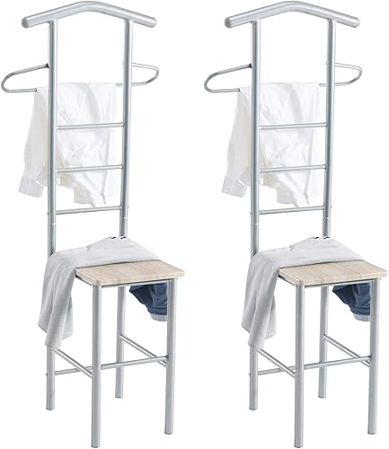 IDIMEX Lot de 2 valets de Chambre JIVO chevalets de Nuit portants pour vêtements, Structure en métal argenté avec Tablette en MDF décor chêne Sonoma
