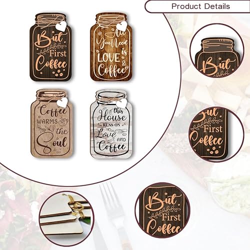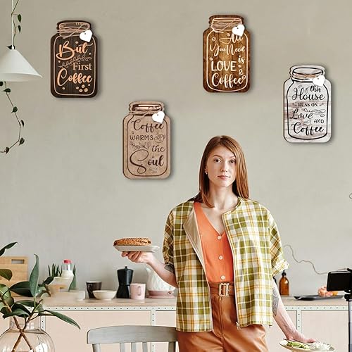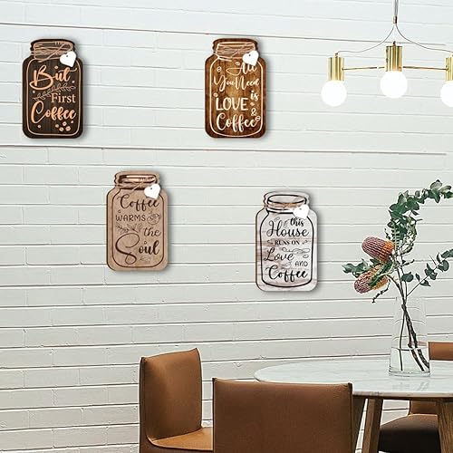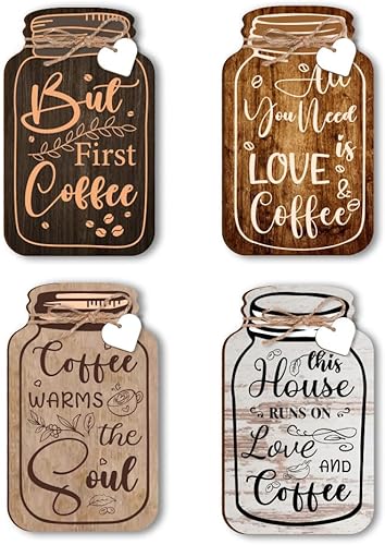PH PandaHall 4pcs panneau de Café en Bois Plaque Murale Suspendue pour Pot, Décor de Café de Ferme Panneau Mural Vintage pour Bar à Café Panneau pour Maison Bar Café