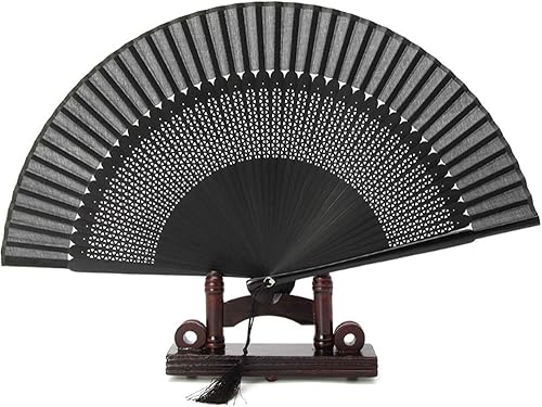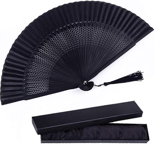 Éventail Pliable en Soie, en Bois de Bambou, Style rétro Chinois/Japonais Vintage Oriental, Fait à la Main avec Une Housse en Tissu et des Pompons pour décoration de Maison, fête, Mariage