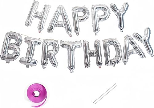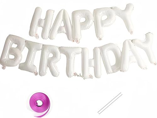 Vthoviwa Happy Birthday Ballon Anniversaire Blanc, Joyeuse Anniversaire Ballon Deco Birthday, Happy Birthday Blanc Bannière Anniversaire Party Deco 16 pouce