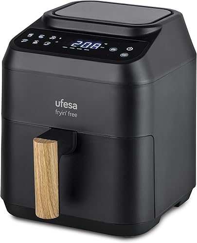 Ufesa AF2850 Fryin' Free Friteuse Sans Huile Air Fryer, 6 Programmes, 1200W, 2.8L, Ecran Tactile, Minuterie, Température 80ºC - 200ºC, Sans BPA, Cuve et Plateau Antiadhésif