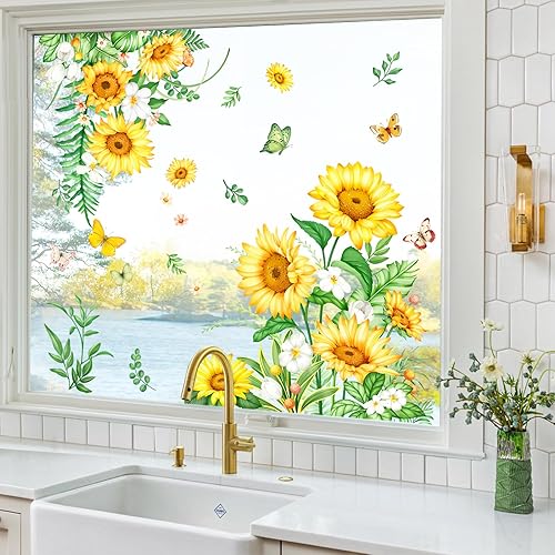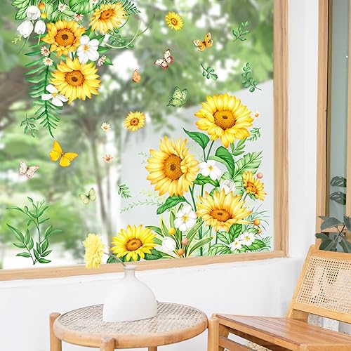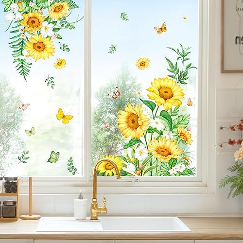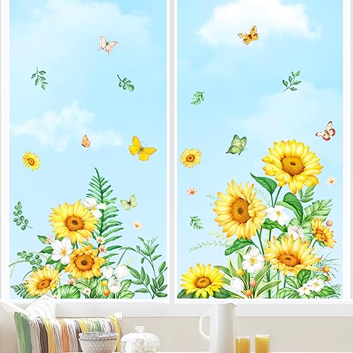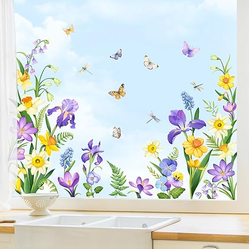 Tanlaby Autocollants Fenêtre Fleurs été Papillon Statique Stickers Fenetre Iris Fleur Sauvage de Jardin Anti-Collision Fenetre pour Chambre Salon Cuisine Salle de Bain Portes Magasin Vitrine