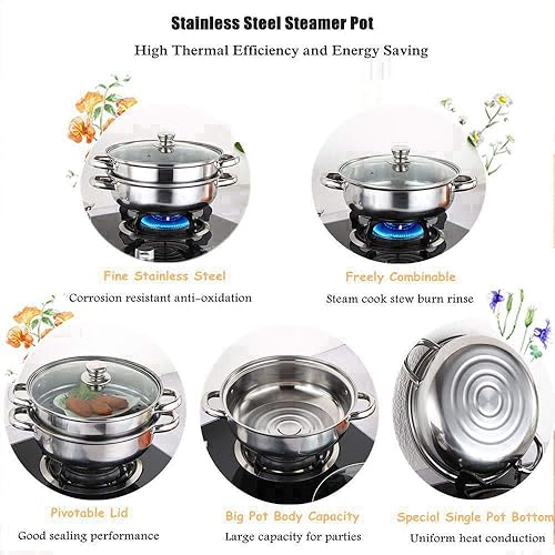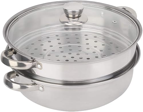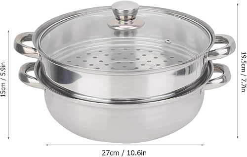 Cuiseur vapeur en acier inoxydable, 2 couches Double couche marmite vapeur avec couvercle Batterie de Cuisine cuiseur double chaudière soupe pot à vapeur 27 x 27 x 19,5 cm