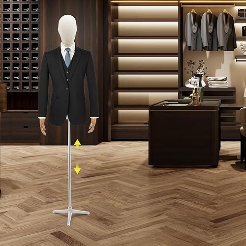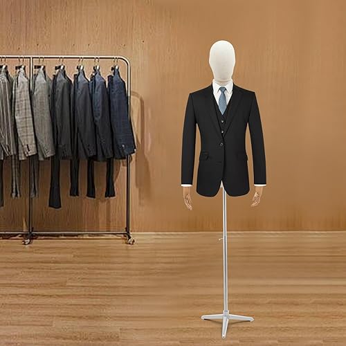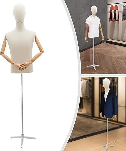 LKHDONG Mannequin de couture pour homme - Hauteur réglable de 135 à 193 cm - Buste de couture - Buste d'homme - Pour magasins de vêtements, couture (lin + argent, taille M)