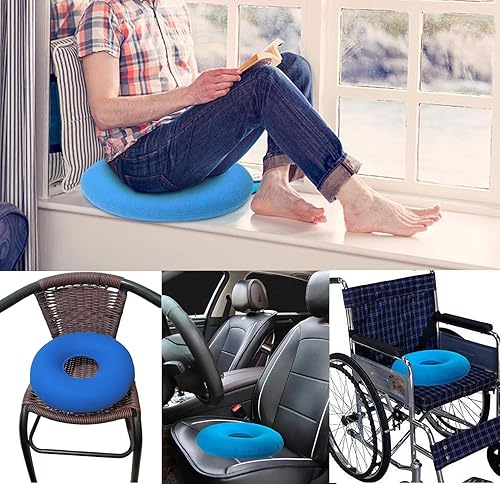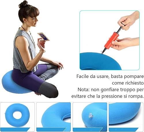 KOMUNJ Coussin rond orthopédique gonflable pour coccyx en forme de beignet avec pompe, coussin hémorroïdes pour hémorroïdes, nerf sciatique, escarres, douleur au coccyx pendant la grossesse