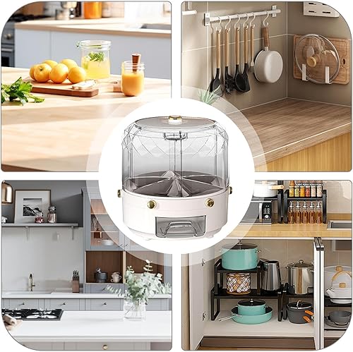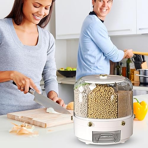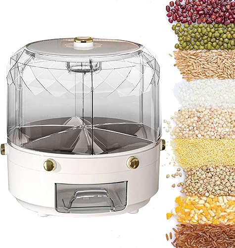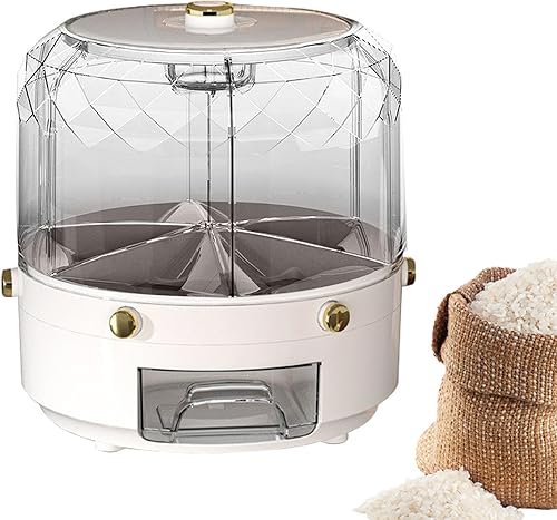 Whrcy Récipient à céréales, distributeur de riz rotatif,Grand récipient à haricots rond - Seau à riz rond à 6 grilles, distributeur rotatif de nourriture sèche pour Restaurant à domicile